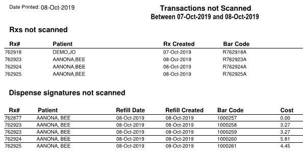 The New/Refill report will generate barcodes for each prescription transaction in the given date range. These work the same way as the Signature Barcodes (see above).