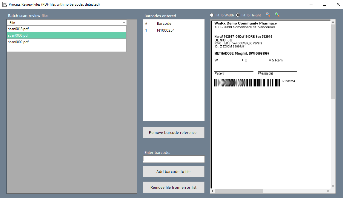 WinRxBatchScan is a software package interfaced with Applied Robotics WinRx which facilitates batch scanning and electronic storage of documents, and helps ensure against data deficiencies that lead to audit repercussions. This software was developed in response to the BC College of Pharmacists bylaw amendments to remove requirements for paper records.